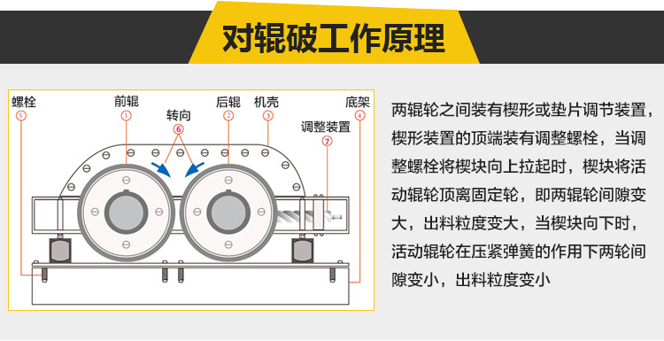輥式破碎機是利用輥面的摩擦力將物料咬入破碎區(qū),使之承受擠壓或劈裂而破碎的機械。當用于粗碎或需要增大破碎比時,常在輥面上做出牙齒或溝槽以增大劈裂作用。